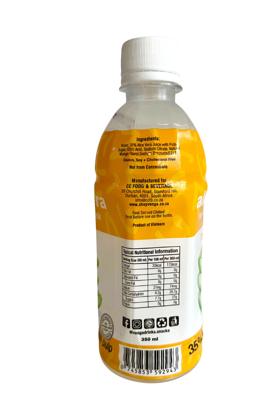 Tropical vibes in every sip! The Venga Aloe Vera Mango Restoring Drink blends 35% pure aloe juice with pulp and real mango flavor for the ultimate refreshing boost. Packed with hydration...